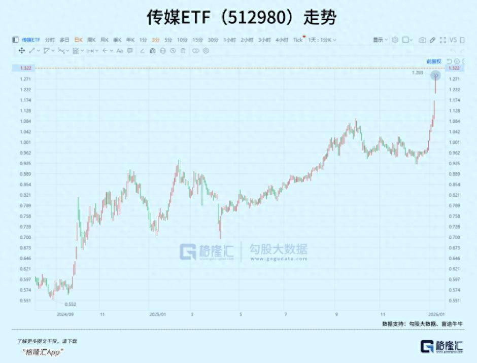 新的概念题材也会层出不穷,但是像现在这些“GEO概念”股票处于连续涨停的趋势,投资者无法在涨停板买入,此时通过传媒ETF(512980)一键布局,就可以更早地享受到AI技术对传媒行业的赋能红利。