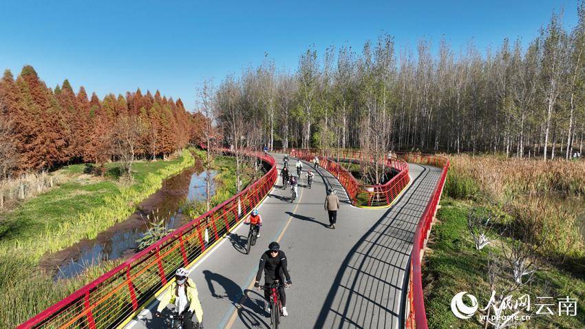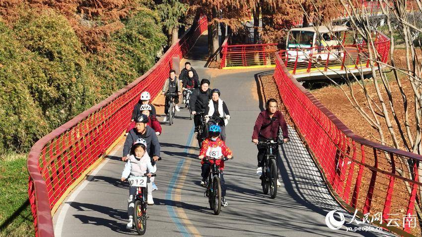 骑行爱好者在滇池绿道上骑行。朱家霖摄人民网昆明1月25日电 (记者李发兴)1月24日,昆明市呈贡区举行“乐动滇池畔,绿道惬意骑”自行车骑行嘉年华活动,近300名骑行爱好者在畅快骑行中邂逅滇池生态之美。