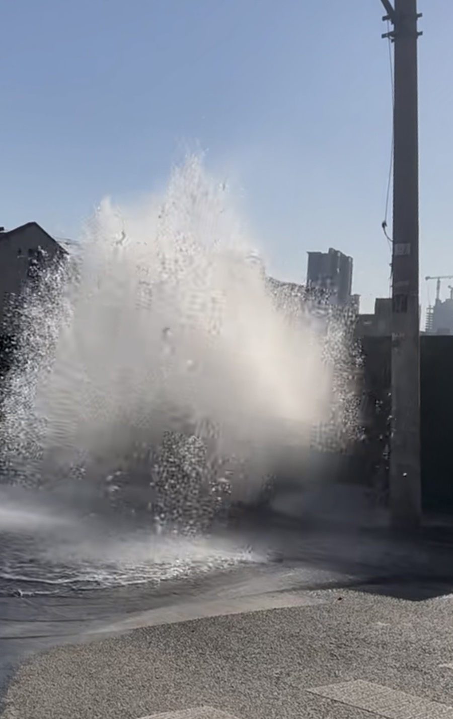 据目击者透露,这只损坏的消防栓位于定海路平凉路路口西南角。有市民看到,消防栓破损后,大量清水喷涌而出,附近路面上迅速出现大量积水。